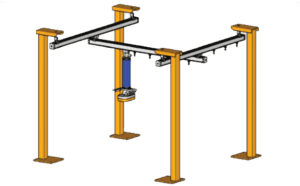 Swing Jib Gantry systems are ideal for coverage of a production area where one process is taking place. The lifting system runs up and down the jib and the swing arm moves side to side giving 270 degree coverage.